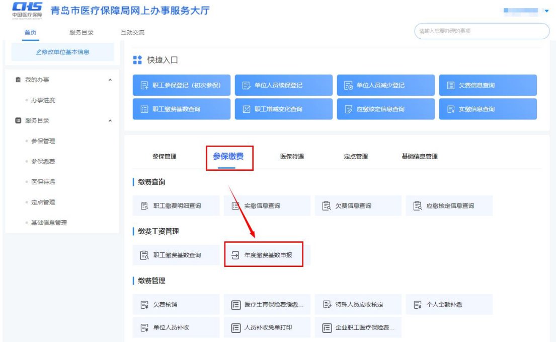1、进入参保缴费--年度缴费基数申报