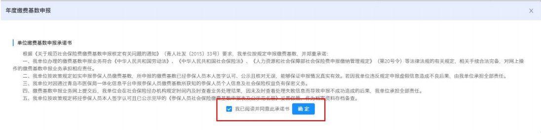(2)选择“年度基数手工申报”方式,阅读后勾选并同意承诺书点击确认。