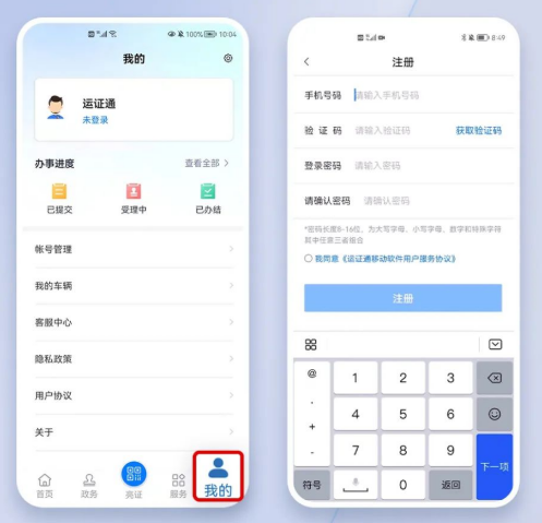 ●首页点击右下角【我的】,进入登陆页面,完成用户注册登陆和实名认证操作。
