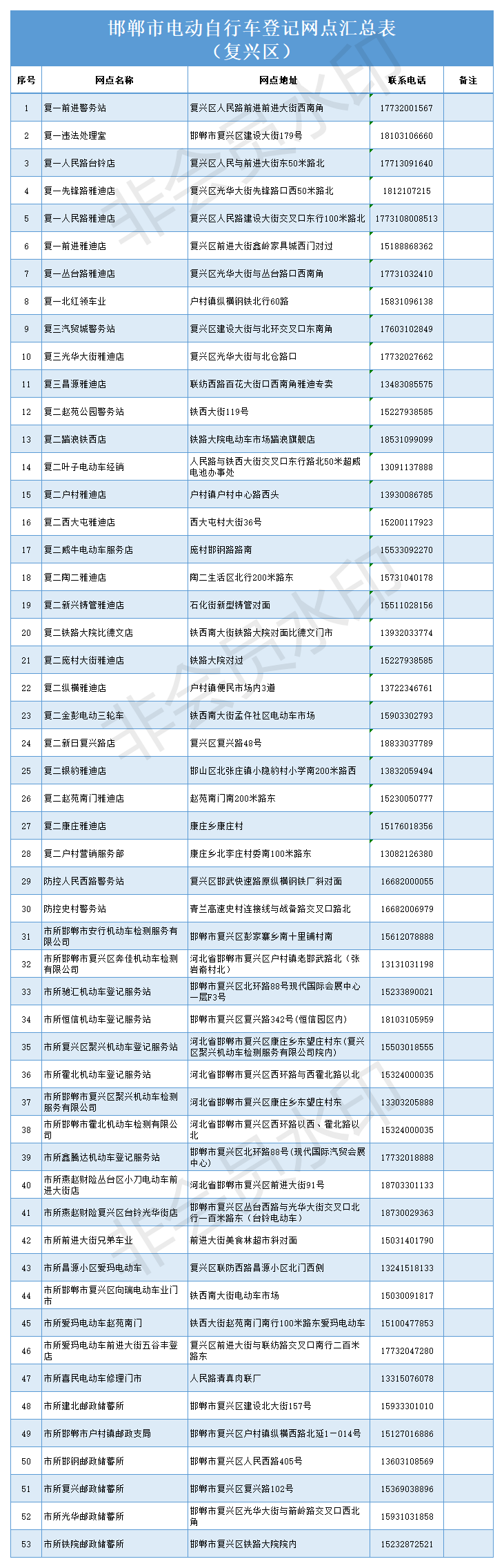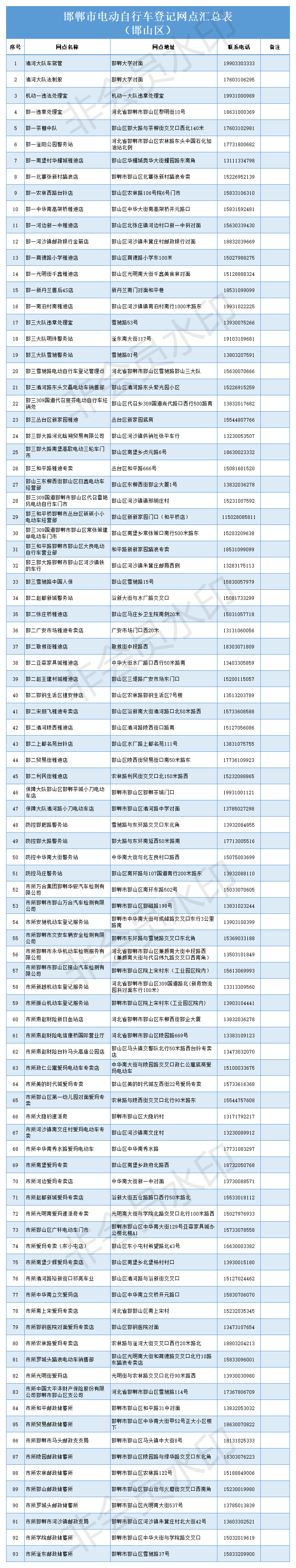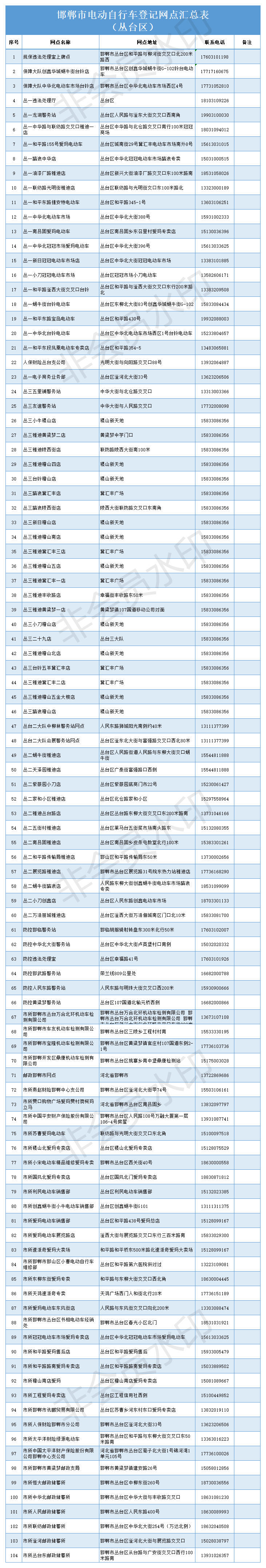 邯郸电动自行车上牌登记网点