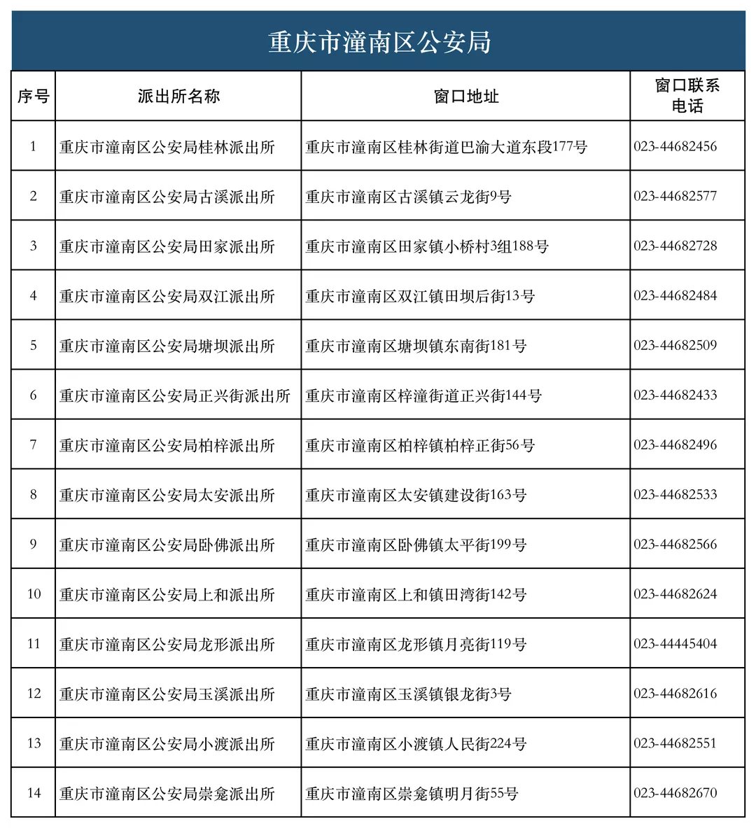 铜梁区户籍窗口综合服务派出所名单有哪些?