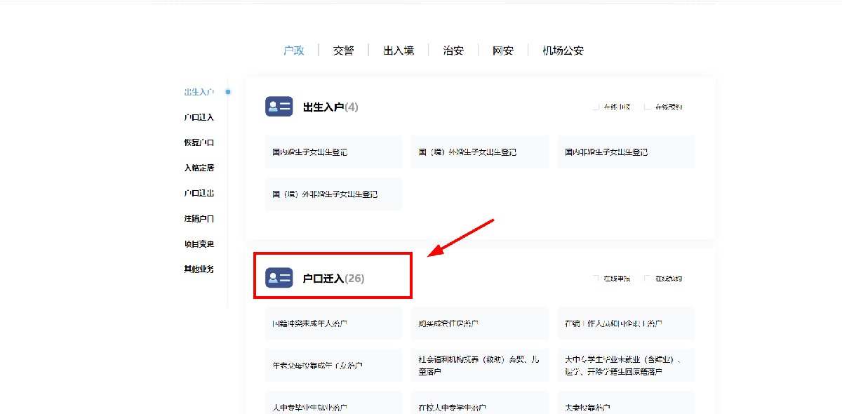 2、点击“户政”,选择“户口迁入”