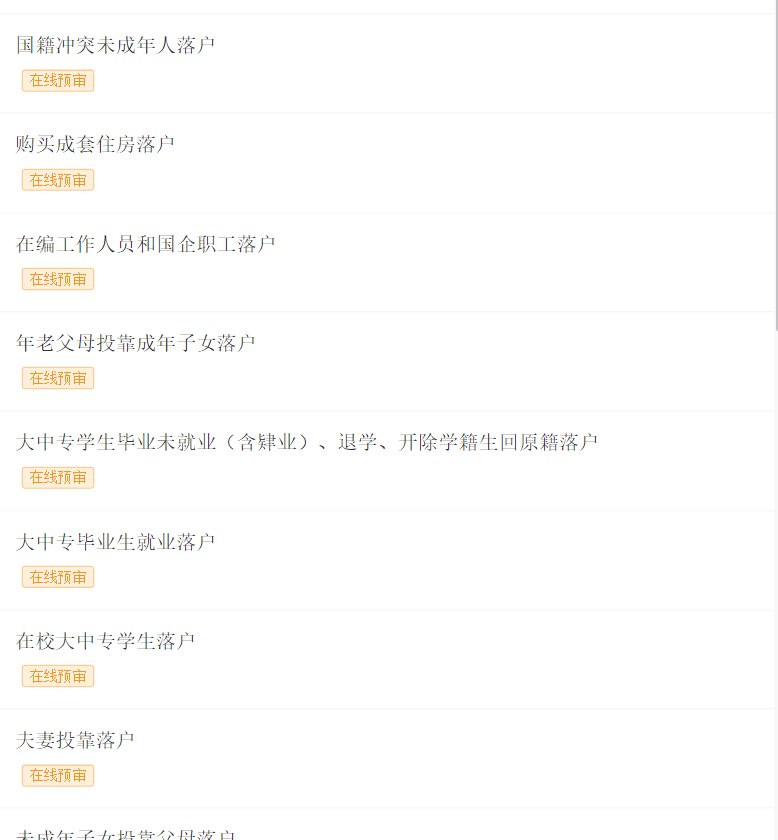 可以网上预审,网上审核通过之后,需要去现场窗口办理。以如下“购房落户”为例。