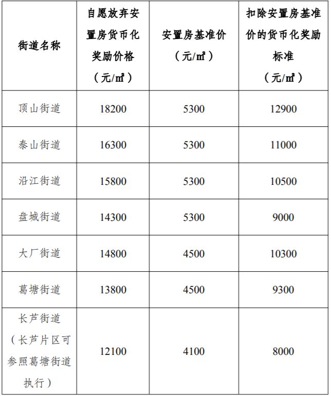 2.扣除安置房基准价的货币化奖励标准=自愿放弃安置房货币化奖励价格-安置房基准价