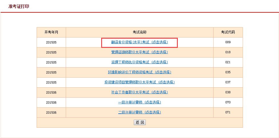 2、点击需要进行准考证打印的考试名称,进入以下界面: