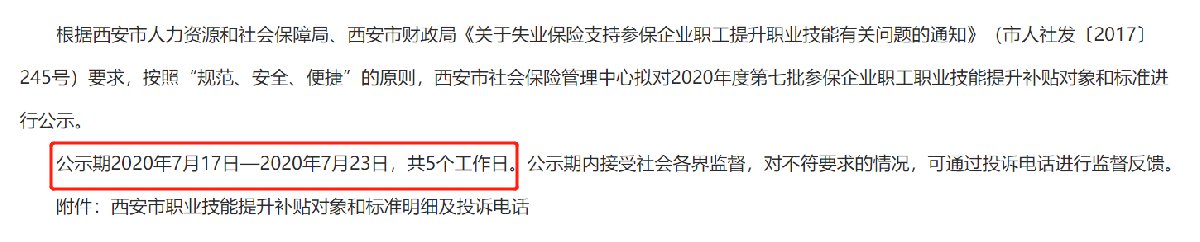 西安技能补贴发放到账时间为每月20日以后,一般会在每月15日开始进行为期5天的公示。