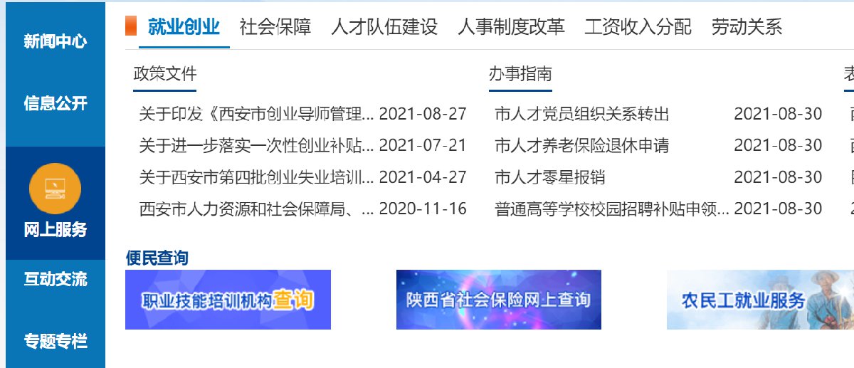 1、电脑网页搜索【西安人社局】,进入西安市人力资源和社会保障局官网