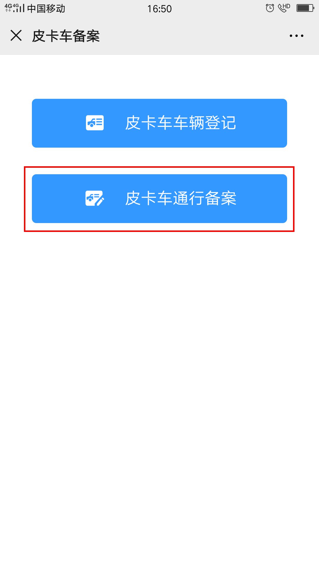 2.点击皮卡车通行备案。