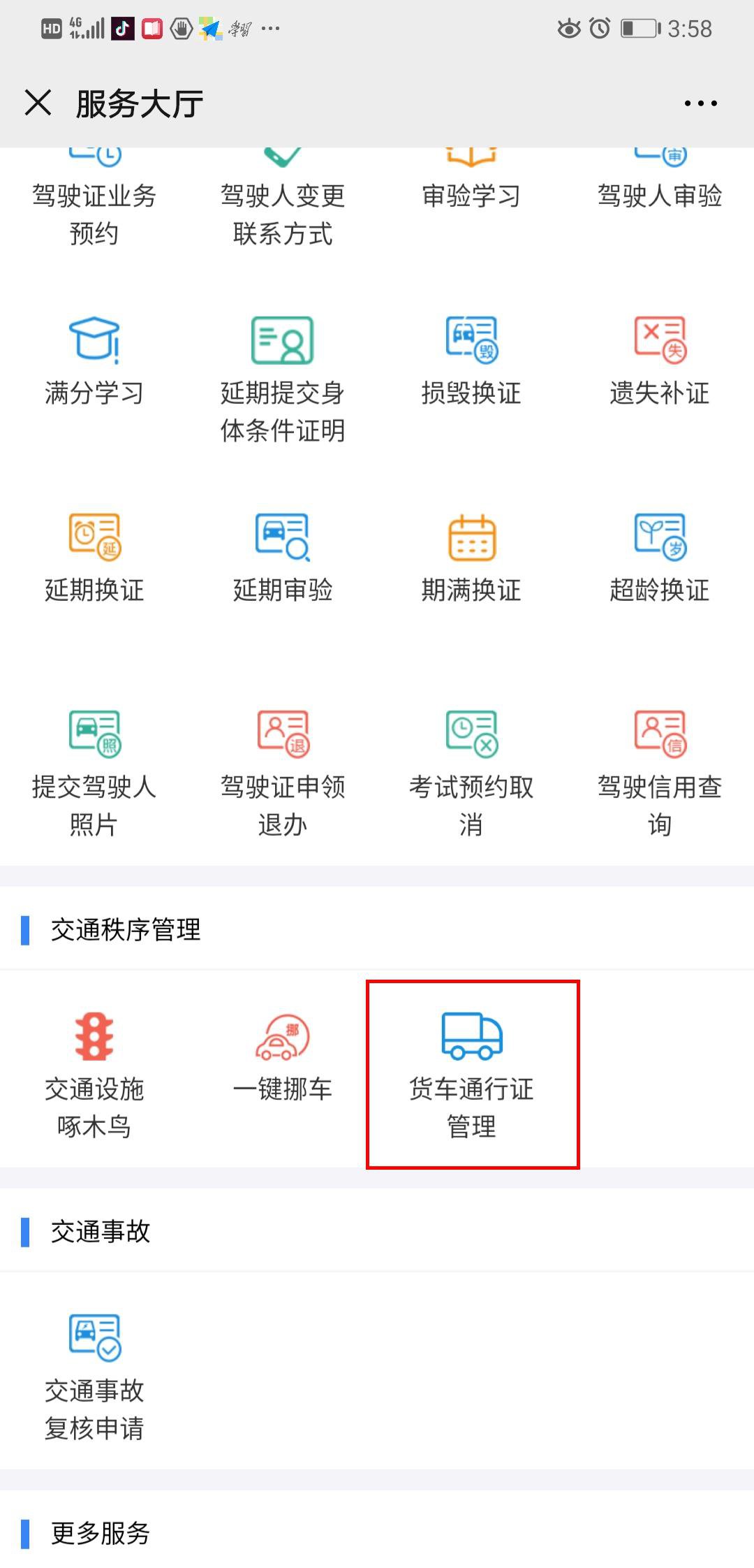 2.选择“货车通行证管理”模块。