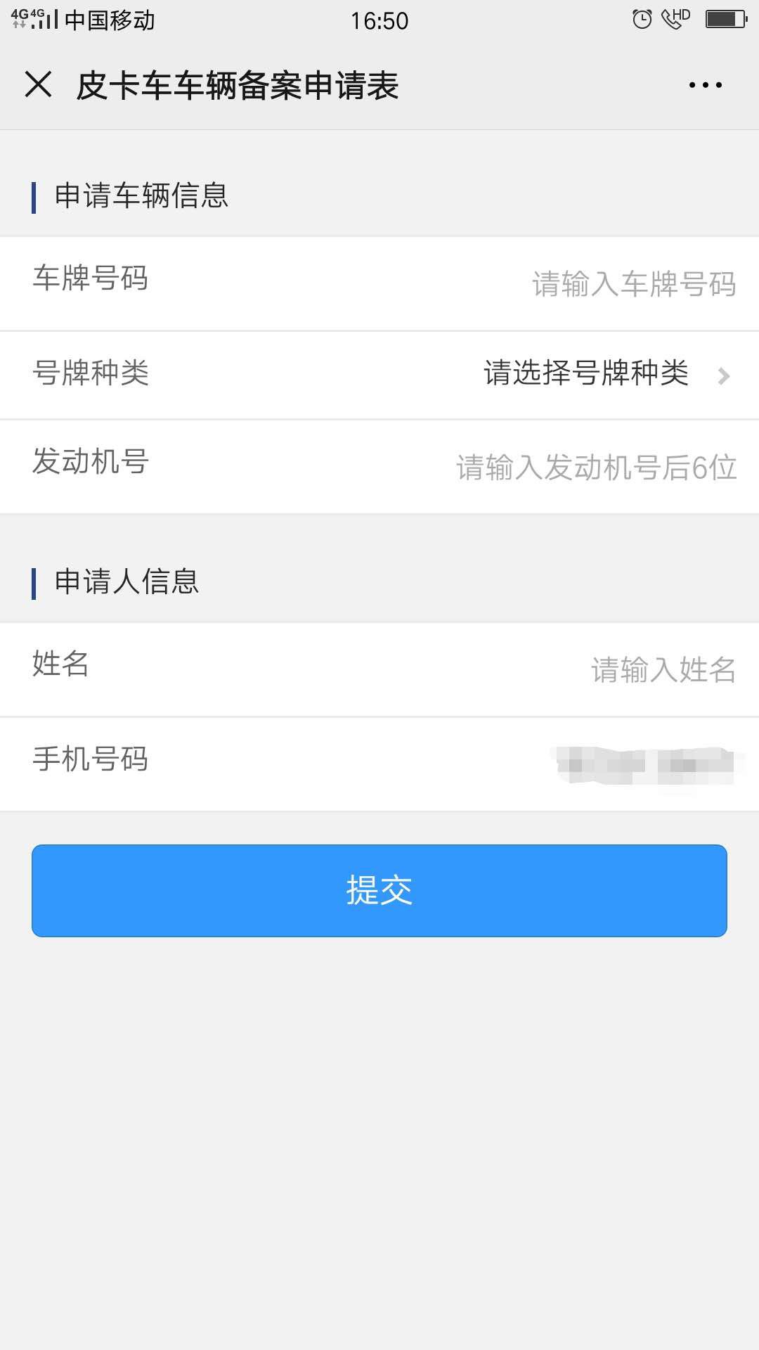 7.填写皮卡车登记信息。
