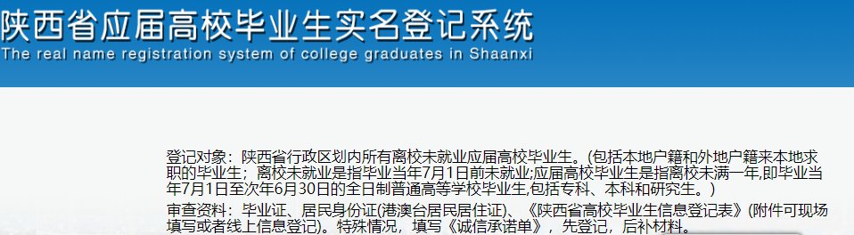 登记对象:陕西省行政区划内所有离校未就业应届高校毕业生。