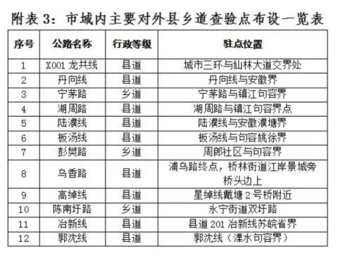 附表1:南京市域内高速公路离宁查验点布设一览表