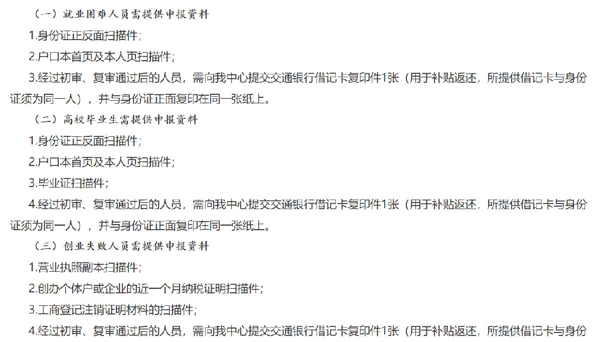 3.经过初审、复审通过后的人员,需向我中心提交交通银行借记卡复印件1张(用于补贴返还,所提供借记卡与身份证须为同一人),并与身份证正面复印在同一张纸上。