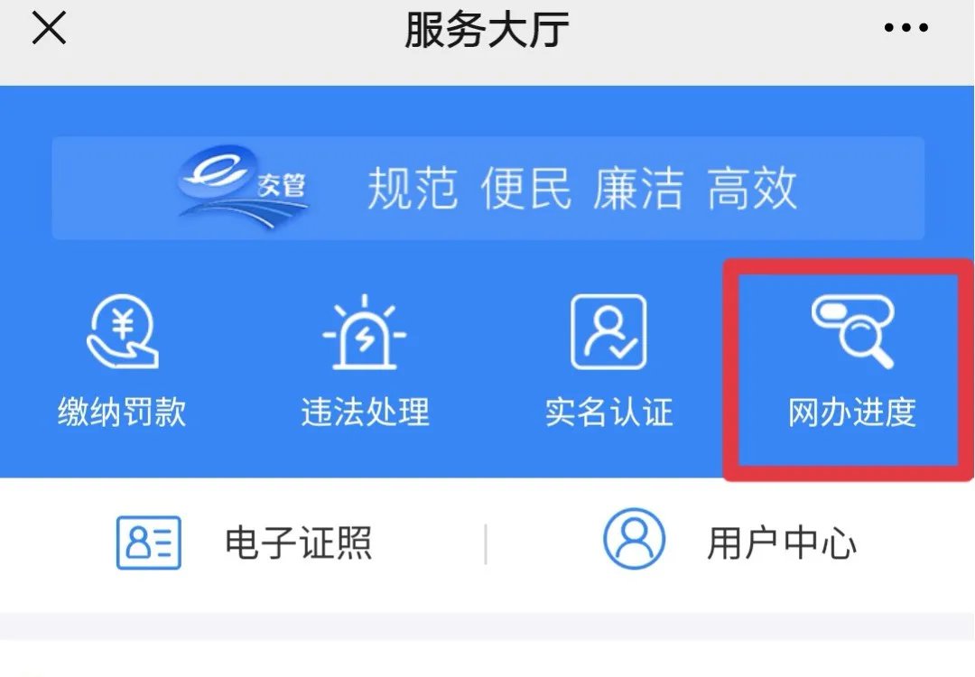 红色、黄色通行证查询路径:登录进入办理界面后,系统用户可进行通行证办理申请或申请记录查看操作:点击【服务大厅】→【网办进度】查看办理进度。