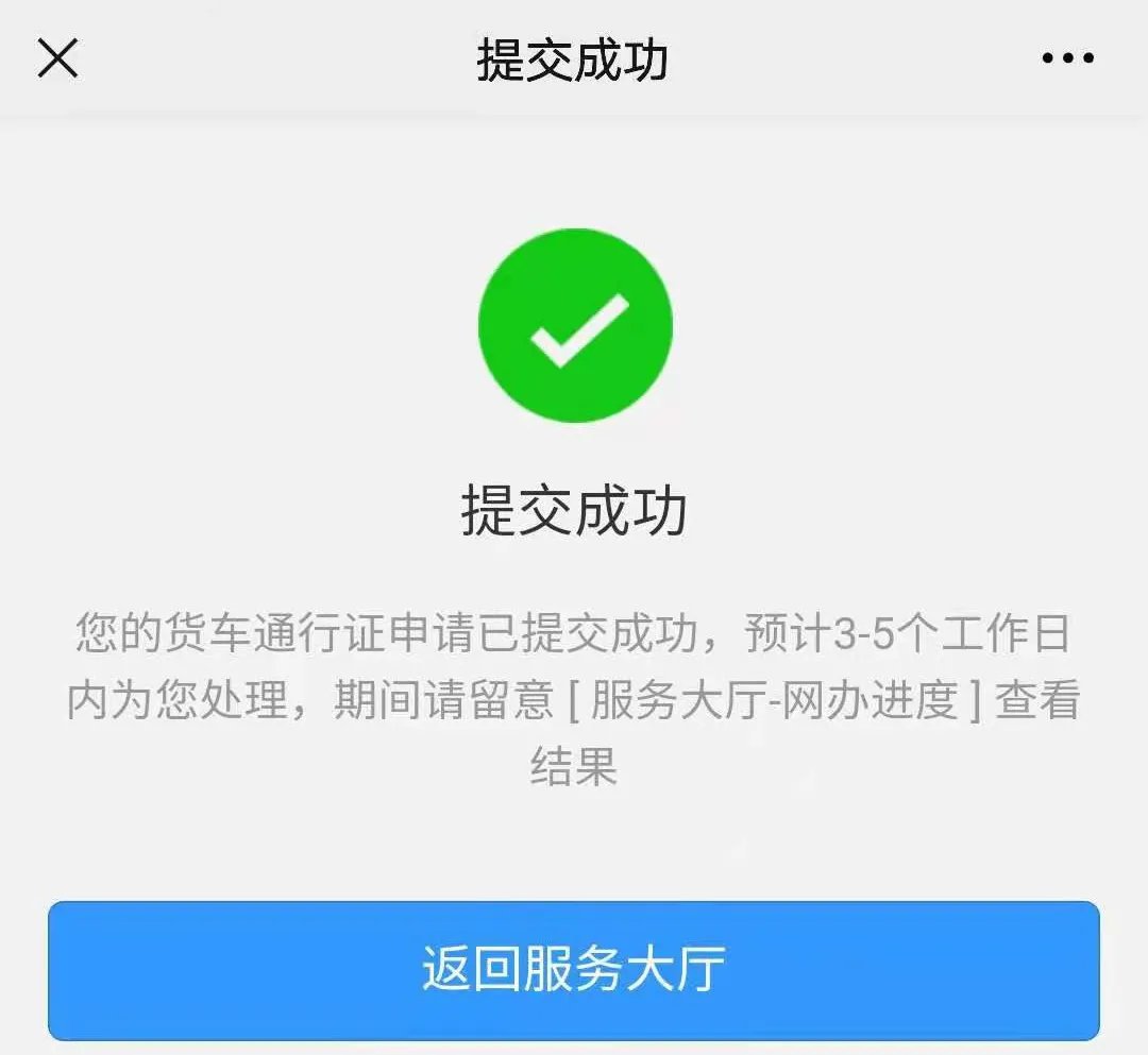 流程:1、应用登录——2、货车通行证(红黄证)申请——3、网办进度查询