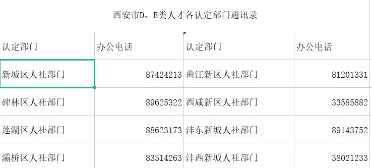 西安各区县DE类人才认定咨询电话(加区号029)