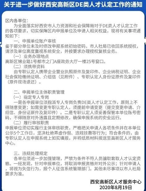 (1)《西安市DE类人才分类认定申请表》(《西安市D、E类人才分类认定表》是系统生成的,仅供导入系统使用,无须提交)等申报材料填写部分必须机打(本人签名除外),一律不得手写、代填、涂改等,否则不予受理!