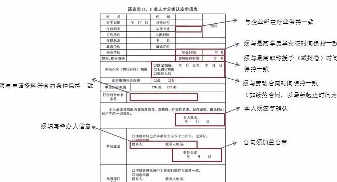 (2)最高学历证书、最高学位证书、职称证书、职业资格等级证书等相关材料信息须与《西安市DE类人才分类认定申请表》一致,没有填“无”!
