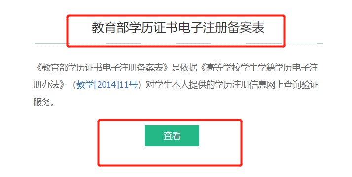 3、选择【教育部学历证书电子注册备案表】,点击【查看】
