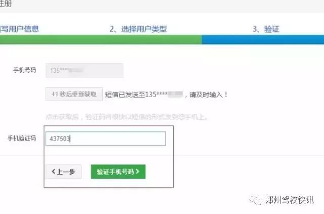 选择“初次申领机动车驾驶证学员”,输入手机验证码,注册成功。