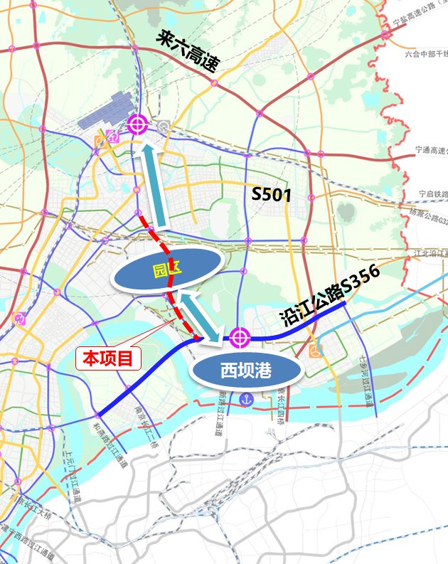 外环路项目北接G205宁淮公路、串联雍六高速,南接s356沿江公路。项目直接连接新材料科技产业园区与西坝港区,建成后将极大提升两区之间货运交流。