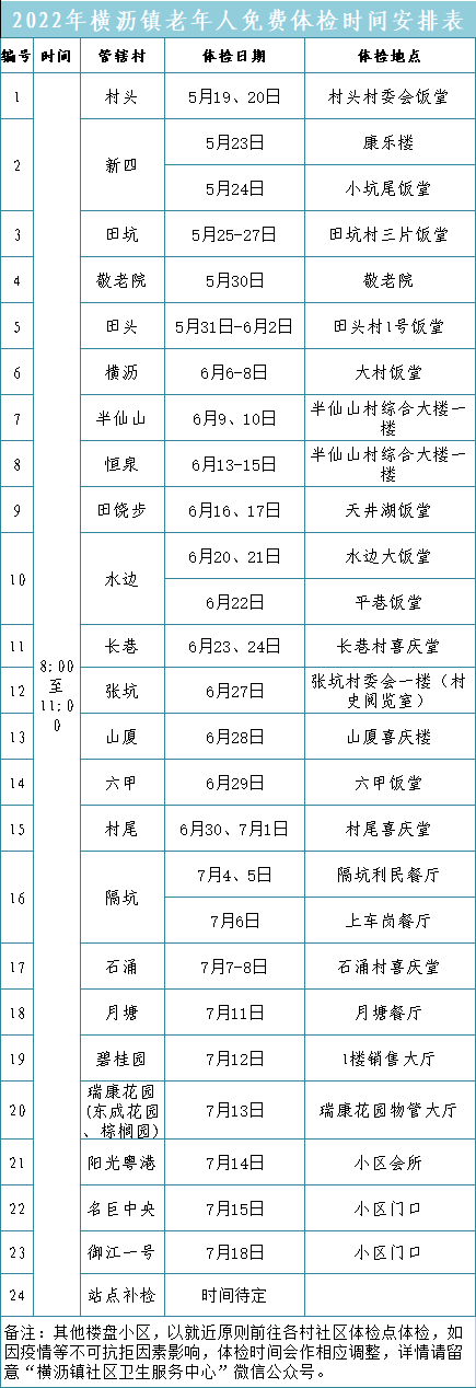 5月19日起,横沥镇2022年老年人免费体检开始啦!