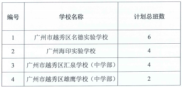 越秀区区辖民办初中招生计划: