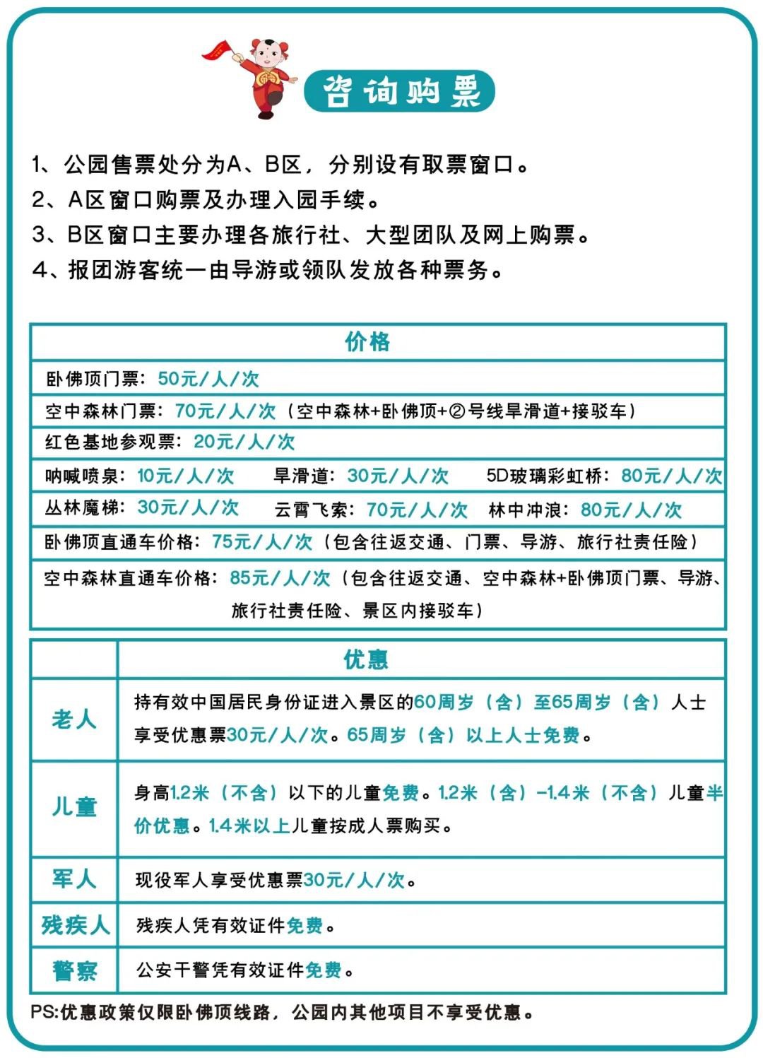 成人票:40元;儿童票:20元;老人票:30元;