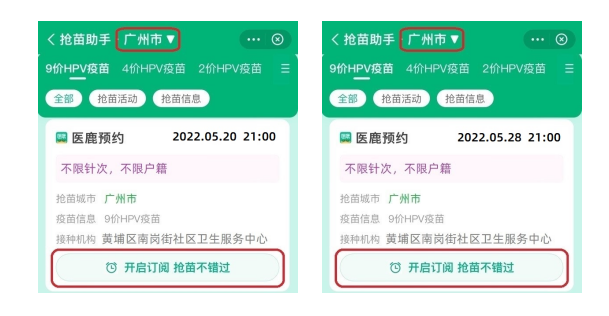 疫苗开放预约时,订阅按钮将变为预约入口,点击立即预约,往下滑找到预约场次-点击订阅。