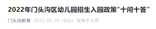 2022年门头沟区幼儿园招生入园政策“十问十答”