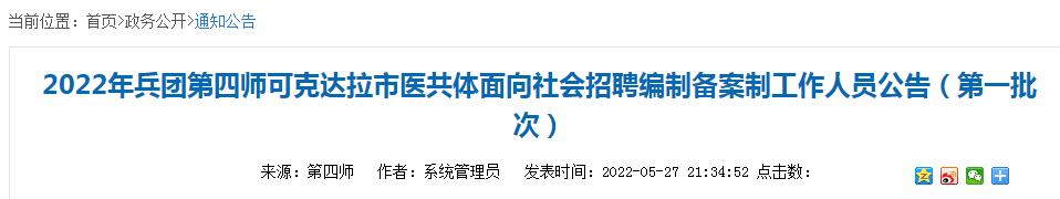 》》》2022年第四师可克达拉市医共体面向社会招聘编制备案制工作人员岗位表(第一批次)