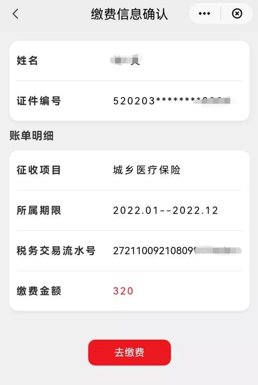 第六步:继续确认缴费信息无误后,点击【去缴费】进入付款页面。