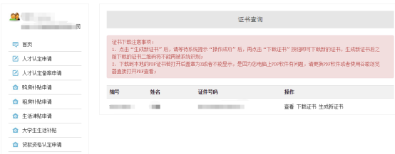 在网页左侧边栏找到 “证书查询”,点击切换到如下图页面