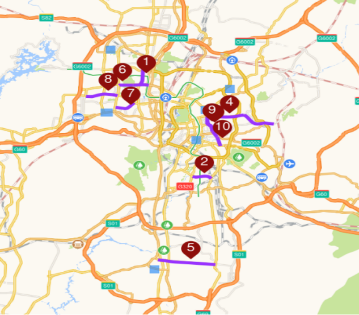 去年中考期间贵阳市早高峰拥堵路段数据