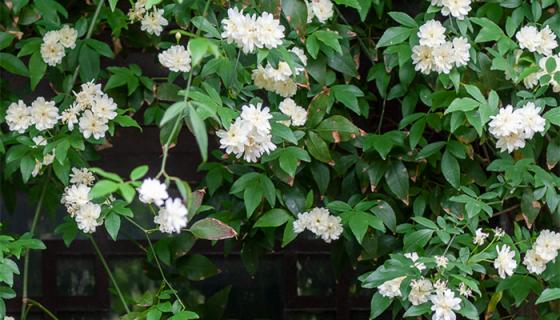 红木香是一种庭院爬藤花卉,花期较长,一年有190天以上的开花时间,花量还很大,颜色艳丽,香味浓郁,是极好的垂直绿化材料,适用于布置花柱、花架、花廊和墙垣是作绿篱的良好材料,非常适合家庭种植;因其爬藤能力突出,也可作花墙,观赏性极佳。