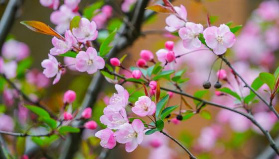 海棠花:海棠素有“国艳”之誉。是中国的特有植物。多生长在海拔50米至2000米的平原和山地,可以人工引种栽培。