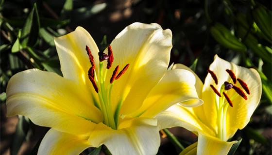 百合花开败后从花茎处修剪,将残花和花茎全部剪掉,可以避免植株消耗太多养分,影响之后植株的成长。不定期将百合植株生病的枝条、枯瘦的枝条都剪掉,促进植株茁壮成长。百合花耐半阴,花期要采取适当的遮荫措施,或放在阴凉的地方养护。