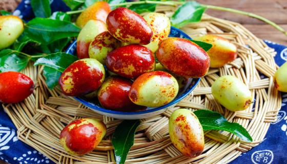 枣(学名:ZiziphusjujubaMill.),别称枣子,大枣、刺枣,贯枣。鼠李科枣属植物,落叶小乔木,稀灌木,高达10余米,树皮褐色或灰褐色,叶柄长1-6毫米,或在长枝上的可达1厘米,无毛或有疏微毛,托叶刺纤细,后期常脱落。