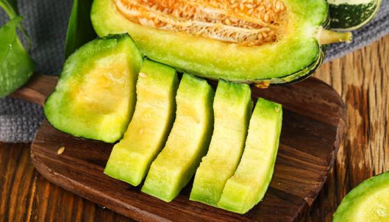 羊角蜜甜瓜单体长二三十厘米,单瓜重可达600~1200g,植株长势强,子蔓结瓜,雌花密。果皮灰绿,肉色淡绿,内厚2cm,含量11.7%,质地松脆,汁多清甜,品质优;单瓜重600g,亩产3000kg以上。